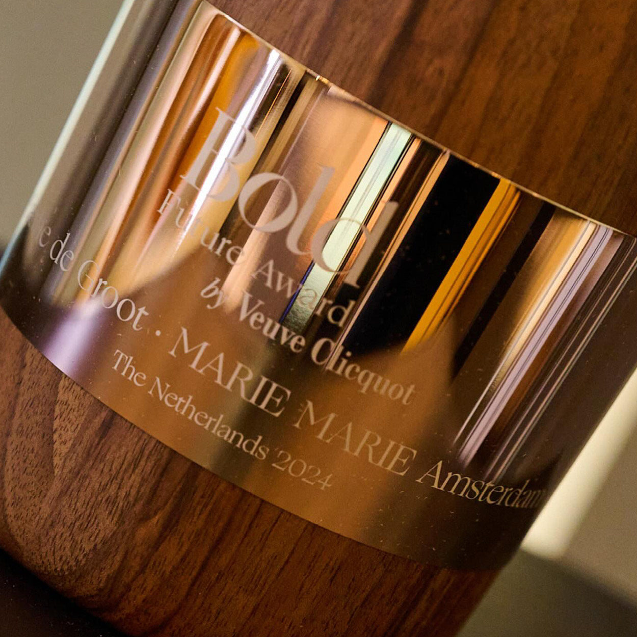 This award is a tribute to Madame Clicquot 'la grande dame of champagne' who took over the champagne house in 1805 after the death of her husband. Her entrepreneurial spirit, determination, and perseverance are qualities that unite bold women around us. Here you can see the proud winners, team MARIE!